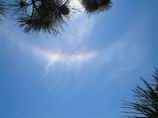 И, о маленькое чудо, - перед нами на краю пропасти само волшебство созданное человеком при Божественном провидении - Храм Воскресения Христова! Многокупольный красавец не просто манил и очаровывал своей красотой - Он наполнял живительной влагой душу, понял - вот чего не хватало целую неделю - Храма Господа, молитвы перед любимыми образами, этой прямой связи с Господом и Пресвятой Богородицей, Святыми и Воинством Господним. И тихая радость наполняла сердце - наконец - то! Выйдя из микрика, неожиданно снял обувь и какая-то сила заставила обойти Храм. Обойдя Храм, ахнул - высокие сосны возвышались над облаками, под которыми было безграничное, застилающее горизонт - море, а сквозь хвою - сияло яркое солнце. И вдруг, о чудо: от солнца отделилась радуга и засияла, переливаясь всеми цветами!